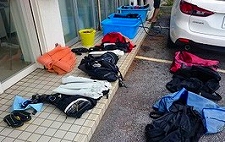 器材洗い場は広く器材用の桶もたくさん準備していますので、しっかりキレイに洗いたい方も安心です。